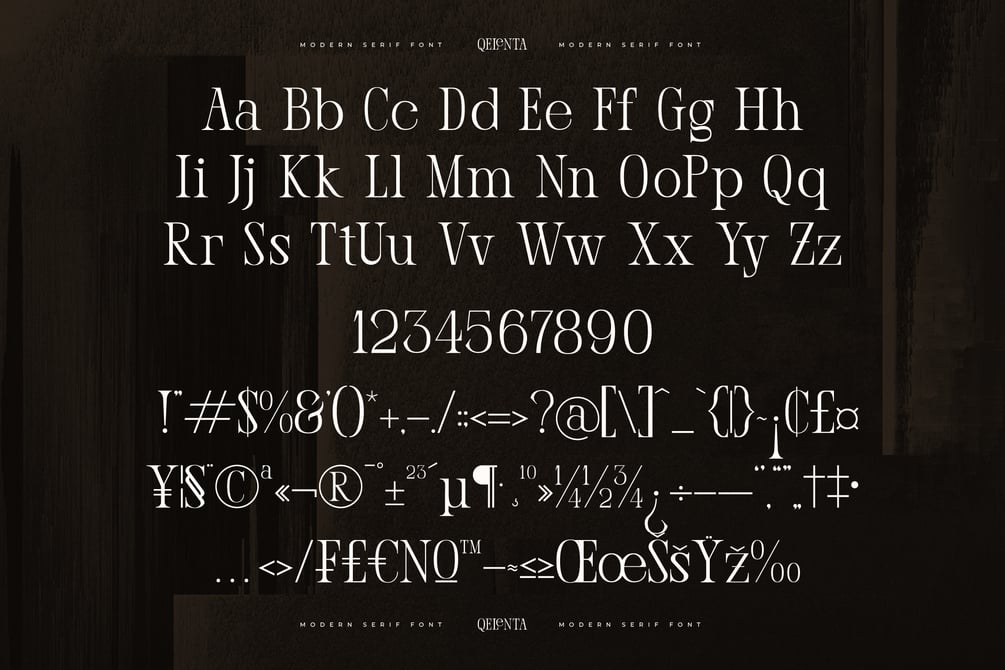 Qelenta exudes contemporary elegance and sophistication. This modern serif font is crafted with precision, offering the perfect balance between sleek lines and smooth curves. Each character is carefully designed to reflect a blend of classic and modern aesthetics, making it an ideal choice for high-end branding and editorial projects.